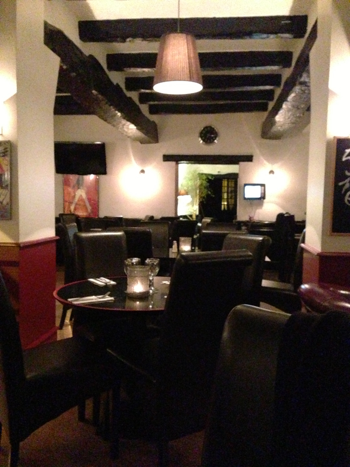 Une devanture agréable, une salle de restaurant intérieure genre chalet de montagne. Une décoration simple et agréable. Chaise en cuire, table de qualité, jolis verres et couverts de bonnes qualités. Je ne comprends pas comment on peut avoir un endroit si charmant et agréable avec une ambiance aussi lourde et pesante sur fond de musique d’ascenseur avec un serveur qui ne sourit pas et un patron qui reste de marbre tous le temps.