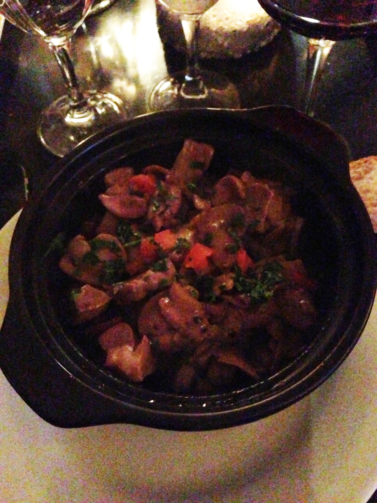 Par la suite, j’ai choisi de pendre « les rognons sauce madère », proposés avec champignons en cassolette accompagnés d’une purée maison. Résultat : cuisson pas respectée (Beaucoup trop cuit), sauce dans la cassolette trop acide. Pour la purée, je dirais qu’il s’agissait plus d’un écrasé de pomme de terre avec des gouttes de beurre d’escargot sur le côté. Le pain est bon.