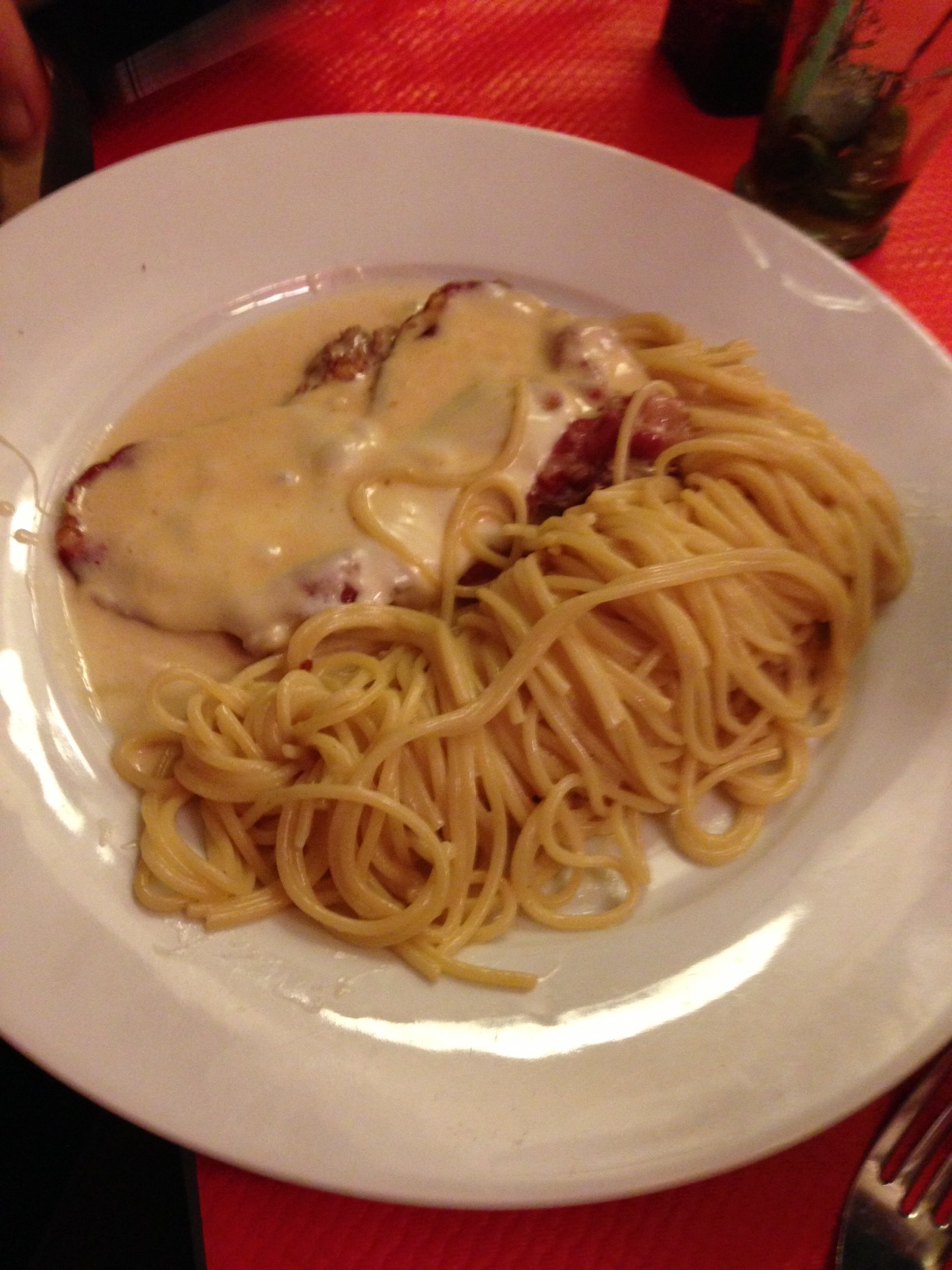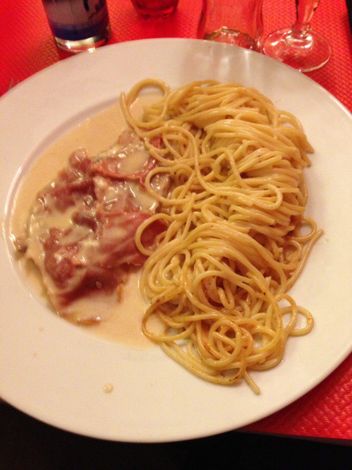 La pizza est fine et excellente. On est dans un registre plus classique que « Inconito ». Nous avons pris la Parma. Seul bémol, je dirais qu’elle n’est pas très copieuse. Nous l’avons partagé à deux en entrée ce qui est un bon concept mais j’avoue cela aurait été léger en plat principal. Nous avons essayés les escalopes et je vous conseille vivement l’escalope italienne (escalope de veau, coppa, mozzarella gratinée, crème, jus de veau et spaghettis) qui est plein de saveur. J’ai été un peu déçu par la toscane. La spécialité en dessert est le pain perdu simple mais très bien réalisé.